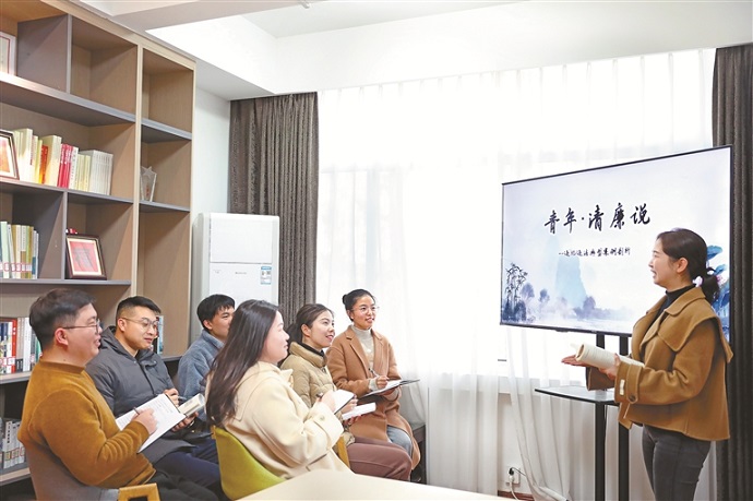 福建省南平市建陽區(qū)紀委監(jiān)委加強對年輕干部的教育監(jiān)督管理,根據(jù)年輕干部特點,選取相關(guān)違紀違法典型案例進行剖析,引導年輕干部引以為戒,自覺筑牢廉潔防線。圖為該區(qū)紀委監(jiān)委年輕干部在“青年·清廉說”學習沙龍上交流心得體會。黃毓婕 攝