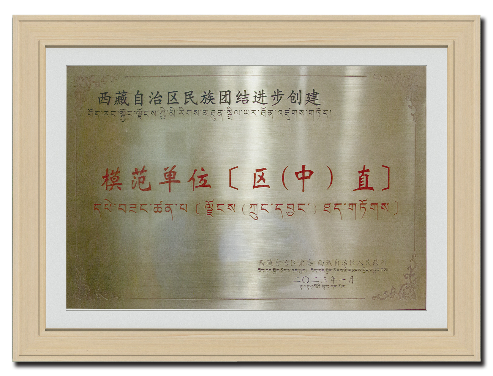 2023年1月 西藏自治區(qū)民族團(tuán)結(jié)進(jìn)步創(chuàng)建《模范單位〔區(qū)(中)直]》