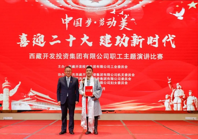 比賽特邀西藏廣播電視臺一級播音員林向紅,西藏大學(xué)教務(wù)處副處長尼瑪拉姆,西藏自治區(qū)青聯(lián)委員白瑪金珠擔(dān)任外部評委。集團公司黨委委員、總會計師陳焱罡,集團公司黨委委員、區(qū)紀委監(jiān)委駐集團公司紀檢監(jiān)察組組長羅布次仁,集團公司黨委委員、副總經(jīng)理溫勇出席比賽并為獲獎選手頒獎。經(jīng)過激烈的角逐,最終元旦旺久斬獲一等獎,申玉芳、張任順榮獲二等獎,陳巧麗、楊虎軍、張宏波榮獲三等獎。