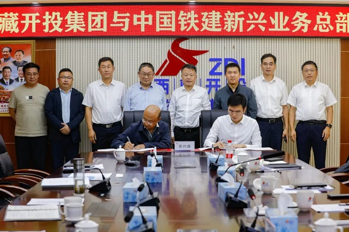 8月15日,西藏開發(fā)投資集團有限公司黨委書記、董事長祁騰武會見來訪的中國鐵建股份有限公司新興業(yè)務(wù)總部黨委書記、總經(jīng)理賈洪一行,雙方就加強溝通、深化合作等相關(guān)事宜座談交流并簽訂戰(zhàn)略合作協(xié)議。集團公司領(lǐng)導(dǎo)陳焱罡、鄧強,中國鐵建新興業(yè)務(wù)總部副總經(jīng)理李兢、中鐵十四局集團副總經(jīng)理石宗濤等參加座談。