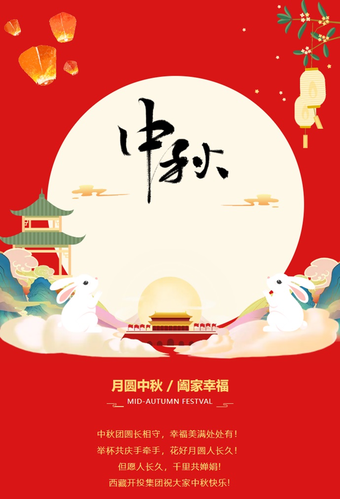 祝各級(jí)領(lǐng)導(dǎo)、全體干部職工及家屬中秋愉快、闔家幸福、萬(wàn)事如意、扎西德勒!