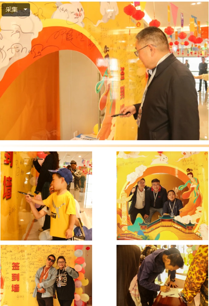 活動(dòng)開始前,員工及家屬陸陸續(xù)續(xù)開始簽到入場(chǎng)。在簽到處的旁邊還設(shè)置了打卡區(qū),員工及家屬紛紛在此打卡留念。