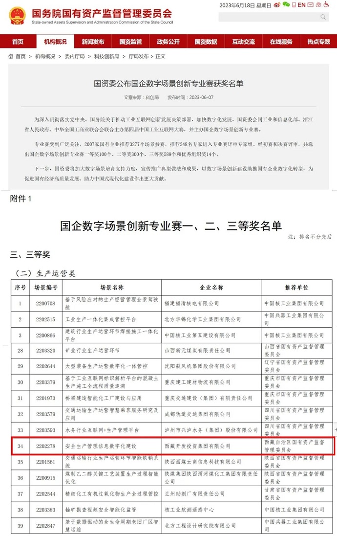 捷報(bào)傳來(lái)丨西藏開(kāi)投集團(tuán)榮獲國(guó)企數(shù)字場(chǎng)景創(chuàng)新專(zhuān)業(yè)賽生產(chǎn)運(yùn)營(yíng)類(lèi)三等獎(jiǎng)