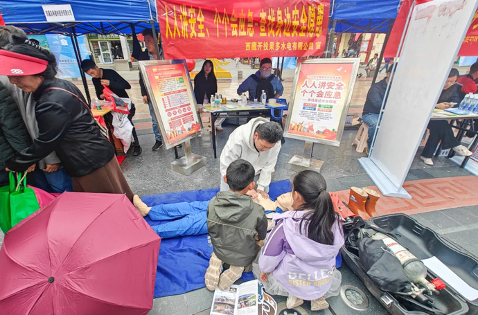 6月16日,西藏開投果多水電公司積極響應(yīng)昌都市安全生產(chǎn)委員會(huì)辦公室及昌都市應(yīng)急管理局邀請(qǐng),參加昌都市“人人講安全、個(gè)個(gè)會(huì)應(yīng)急——查找身邊安全隱患”為主題的安全宣傳咨詢?nèi)栈顒?dòng)。活動(dòng)現(xiàn)場(chǎng),果多水電公司向市民發(fā)放了安全用電手冊(cè),積極普及安全用電知識(shí),現(xiàn)場(chǎng)講解了各電壓等級(jí)驗(yàn)電棒、三相短路接地線、高壓拉閘桿及正壓式空氣呼吸器、五點(diǎn)式安全帶等多種安全設(shè)備相關(guān)知識(shí),并開展了心肺復(fù)蘇模擬器實(shí)操演示,吸引了眾多市民駐足觀摩,部分市民還積極參與了心肺復(fù)蘇模擬實(shí)操。