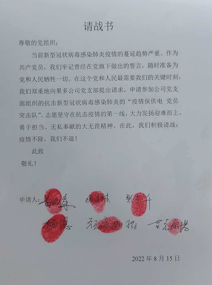 (黨員突擊隊(duì)請(qǐng)戰(zhàn)書(shū) 王強(qiáng)攝)