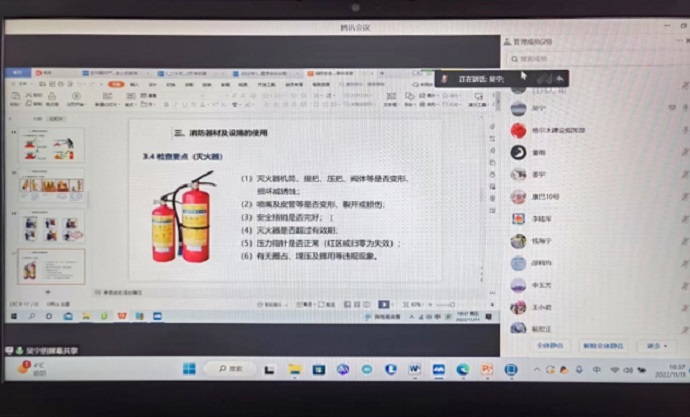 11月11日,油氣管道分公司組織開展消防安全知識(shí)線上專題學(xué)習(xí)會(huì)。會(huì)議傳達(dá)學(xué)習(xí)了西藏自治區(qū)國資委關(guān)于轉(zhuǎn)發(fā)《2022年“119”消防宣傳月活動(dòng)方案》的通知和《消防安全基礎(chǔ)知識(shí)培訓(xùn)手冊(cè)》,觀看了《2022年近期住宅小區(qū)消防安全警示片》。