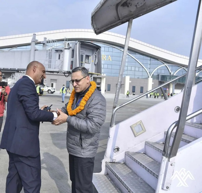 喜航行政副總裁Vijay Shrestha先生和運(yùn)營(yíng)副總裁郝迪機(jī)長(zhǎng)帶領(lǐng)的機(jī)組人員受到博卡拉機(jī)場(chǎng)的熱烈歡迎。
