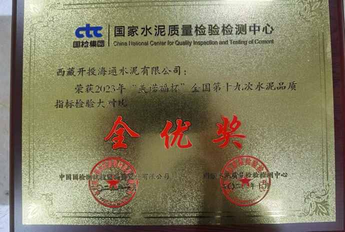 近期,西藏開投海通水泥有限公司獲得“美諾福杯”全國(guó)第十九次水泥品質(zhì)指標(biāo)檢驗(yàn)大對(duì)“全優(yōu)獎(jiǎng)”?!?/div>