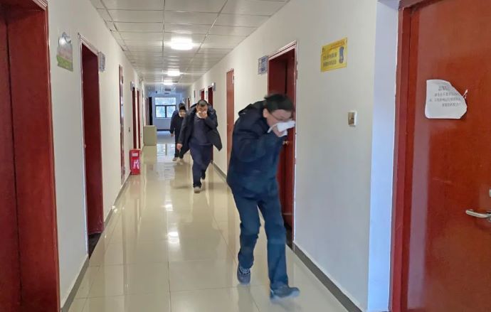 應(yīng)急疏散演練現(xiàn)場(chǎng)。布瓊 攝