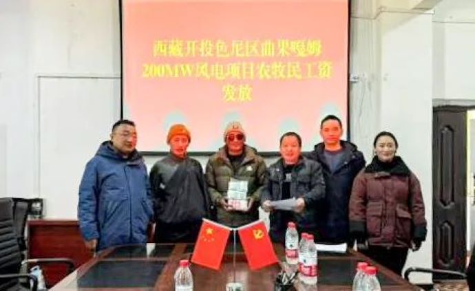 11月28日、12月2日,西藏開(kāi)投那曲河水電公司組織舉行色尼區(qū)曲果嘎姆200MW風(fēng)電項(xiàng)目農(nóng)牧民工資發(fā)放儀式,為羅瑪鎮(zhèn)、香茂鄉(xiāng)5個(gè)村共計(jì)338人發(fā)放工資129.96萬(wàn)元。