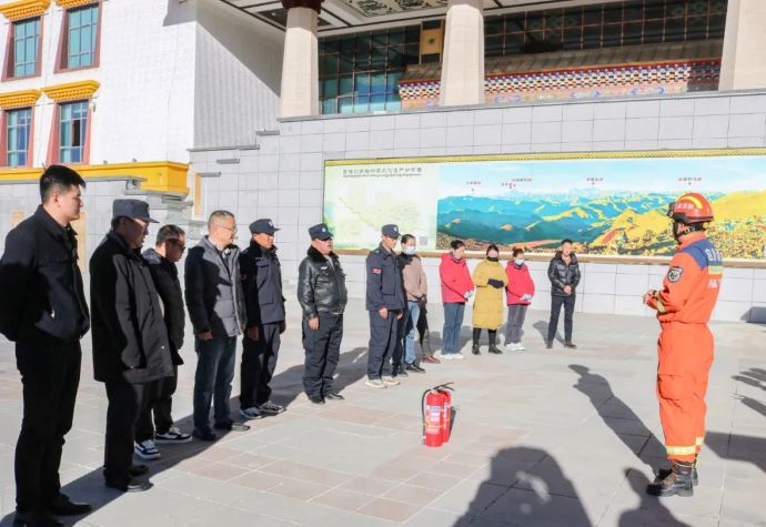 本次演練活動特邀日喀則市消防救援支隊消防員進行消防安全知識授課,深度剖析了近年來發(fā)生的典型火災案例,重點圍繞疏散逃生技能、消防設施器材使用、液化罐著火處理、火災撲救等環(huán)節(jié)進行實際操作。