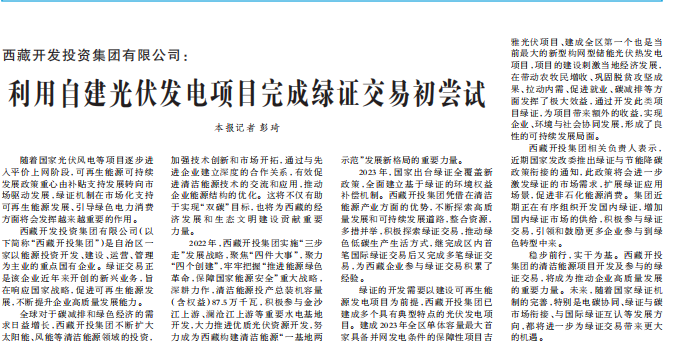 西藏日報、新浪財經(jīng)等媒體報道利用自建光伏發(fā)電項目完成綠證交易初嘗試