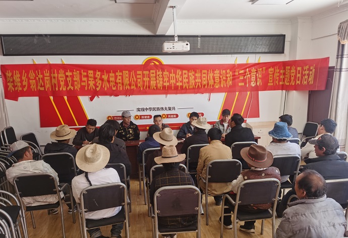 6月25日,果多水電公司黨支部結(jié)合習(xí)近平新時(shí)代中國(guó)特色社會(huì)主義思想主題教育活動(dòng)與柴維鄉(xiāng)翁達(dá)崗村黨支部聯(lián)合開展了以“鑄牢中華民族共同體意識(shí)和‘三個(gè)意識(shí)’”為主題的黨日活動(dòng)。