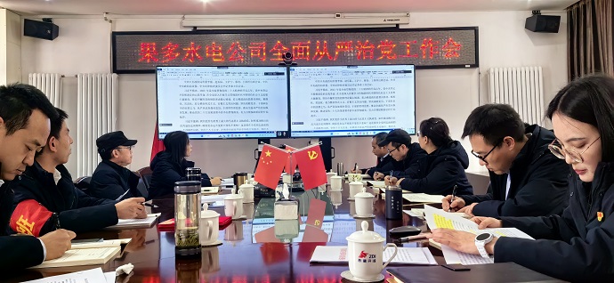 3月28日,果多水電公司召開全面從嚴(yán)治黨工作會,深入學(xué)習(xí)貫徹習(xí)近平總書記在二十屆中央紀(jì)委三次全會上的重要講話精神、《中國共產(chǎn)黨紀(jì)律處分條例》、中央紀(jì)委國家監(jiān)委文章《國資央企反腐敗高壓態(tài)勢持續(xù)鞏固》、集團公司全面從嚴(yán)治黨工作會議精神、《中國共產(chǎn)黨廉潔自律準(zhǔn)則》等。會上與各部門簽訂了《2024年度黨風(fēng)廉政建設(shè)責(zé)任書》,與全體黨員、中層及以上干部簽訂《2024年度廉潔從業(yè)承諾書》。果多水電公司黨支部書記宋亞東主持會議并講話,全體干部職工參加。