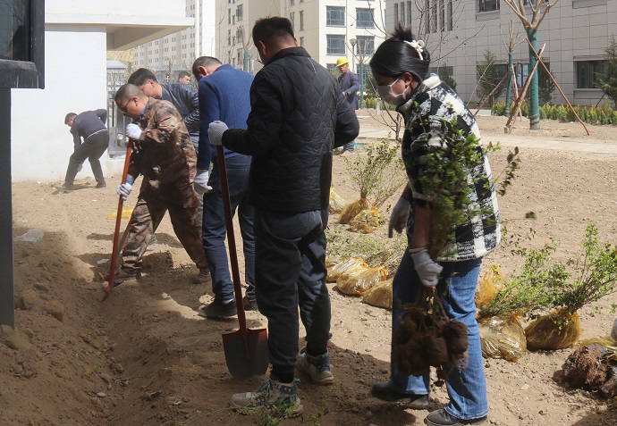 活動現(xiàn)場,在聽取工作人員講解植樹注意事項后,大家三五一組、分工協(xié)作,有的揮鍬鏟土、填苗澆水,有的培土圍堰、澆水灌溉,還有的清掃垃圾、搬運雜物?,F(xiàn)場氣氛活躍、組織有序,呈現(xiàn)出一片熱火朝天的忙碌景象。每道工序一絲不茍、認真細致,展現(xiàn)了團結(jié)協(xié)作、奮發(fā)向上的精神風(fēng)貌。