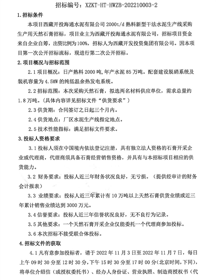 西藏開投海通水泥有限公司2000t/d熟料新型干法水泥生產(chǎn)線