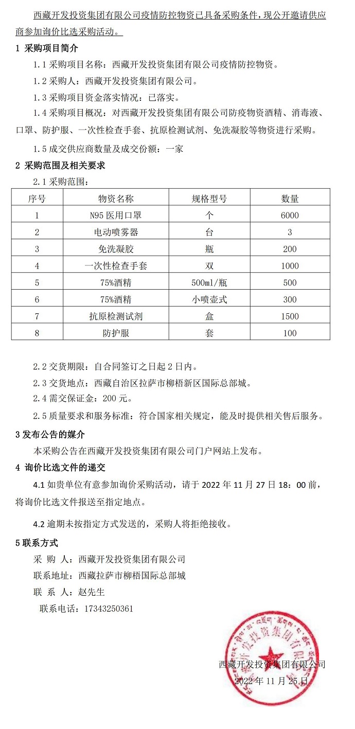 西藏開發(fā)投資集團有限公司疫情防控物資
