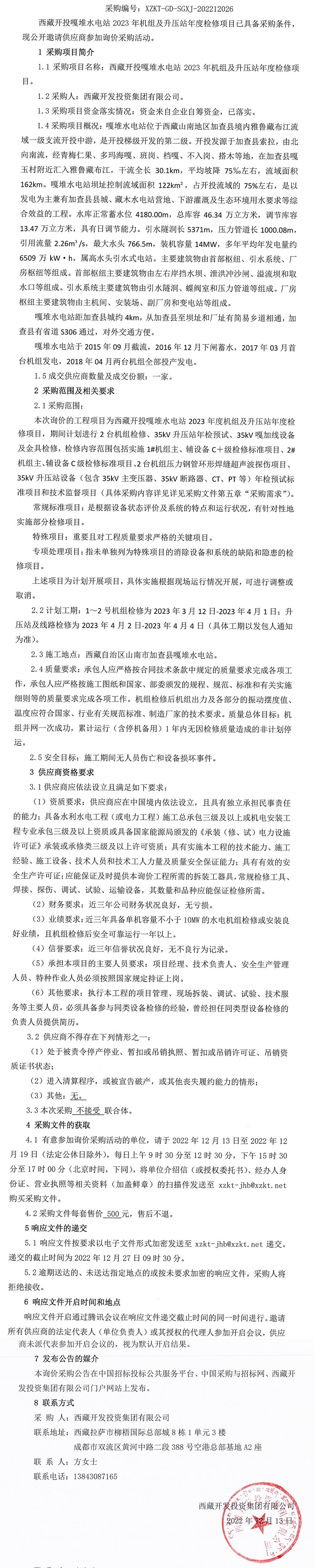 西藏開投嘎堆水電站2023年機(jī)組及升壓站年度檢修項(xiàng)目