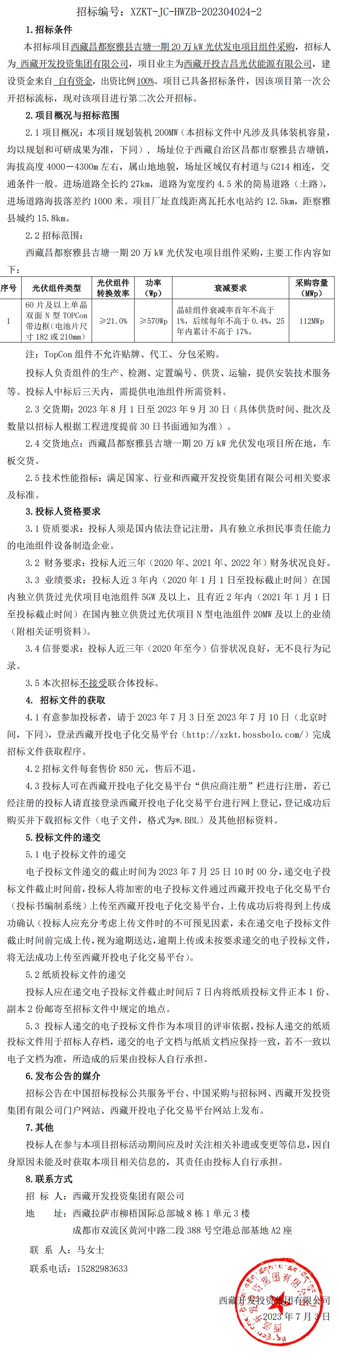 西藏昌都察雅縣吉塘一期20萬kW光伏發(fā)電項(xiàng)目組件采購