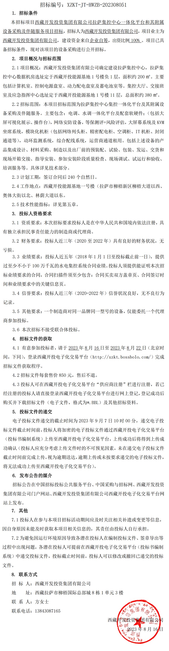 西藏開(kāi)發(fā)投資集團(tuán)有限公司拉薩集控中心一體化平臺(tái)和