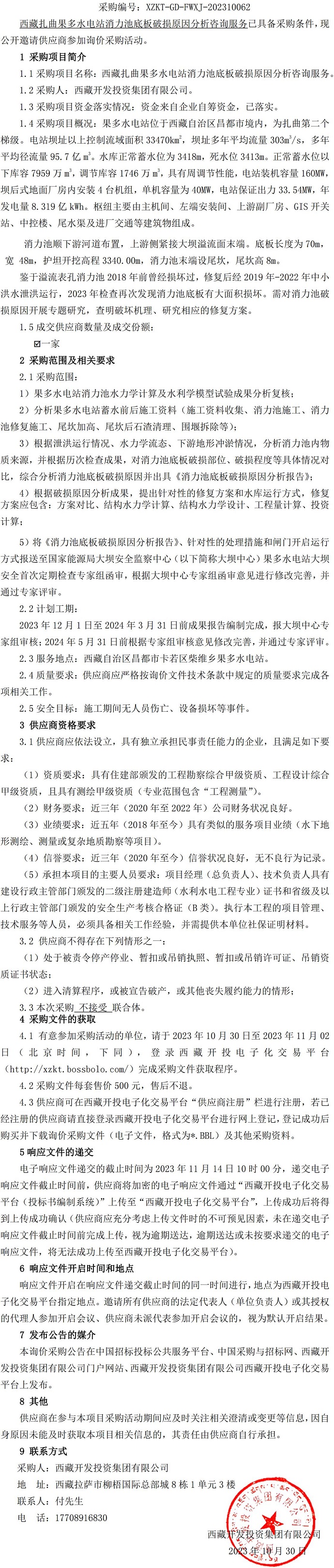 西藏扎曲果多水電站消力池底板破損原因分析咨詢服務(wù)詢價(jià)采購(gòu)公告