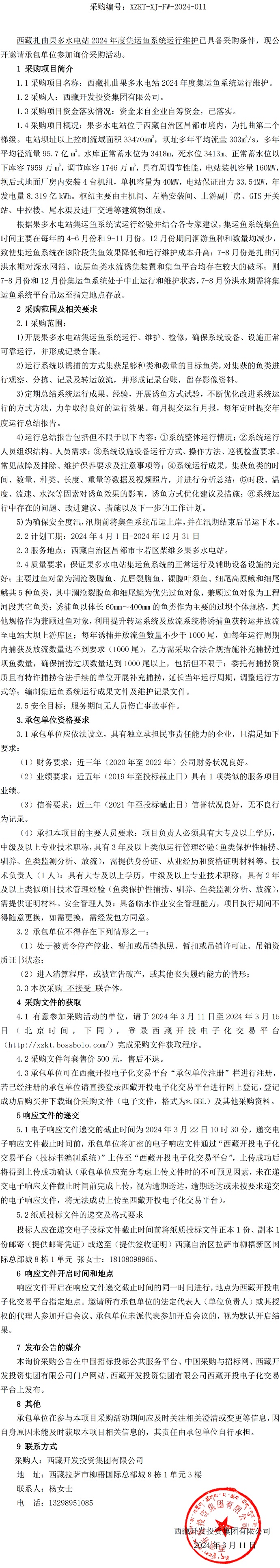 西藏扎曲果多水電站 2024 年度集運(yùn)魚系統(tǒng)運(yùn)行維護(hù)詢價采購公告