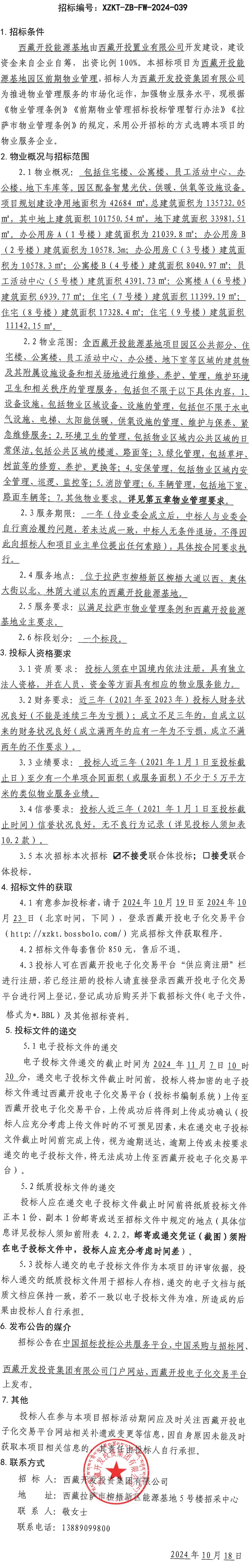 西藏開(kāi)投能源基地園區(qū)前期物業(yè)管理招標(biāo)公告